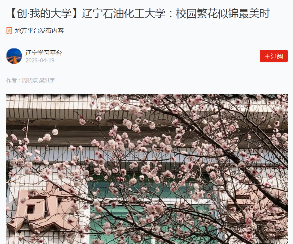 编者按:近日,学习强国辽宁学习平台、人民日报客户端·人民号等媒体平台对我校春季美景以图集形式进行了宣传报道。现将相关报道转载如下: