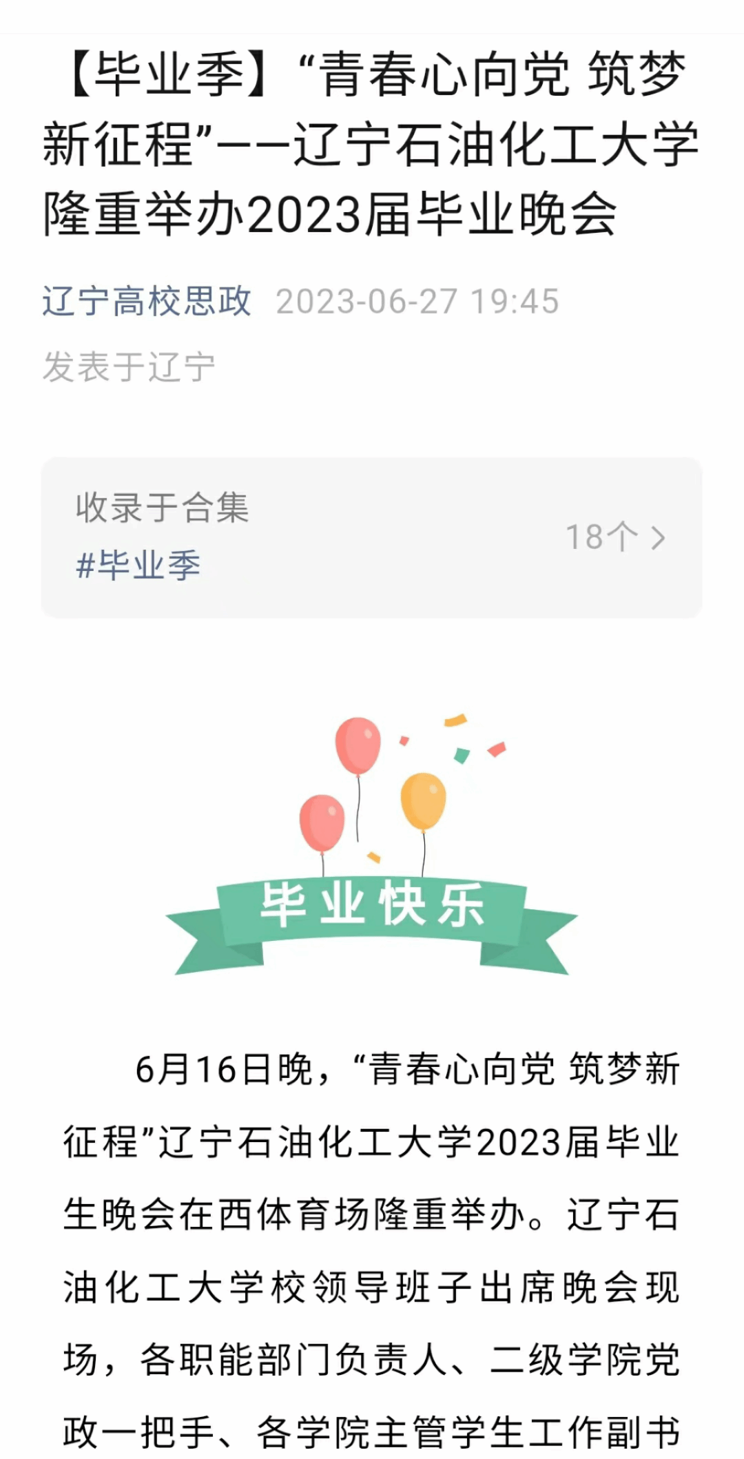 编者按:近日,辽宁高校思政对我校举办2023届毕业生晚会进行了宣传报道。现将相关报道转载如下:
