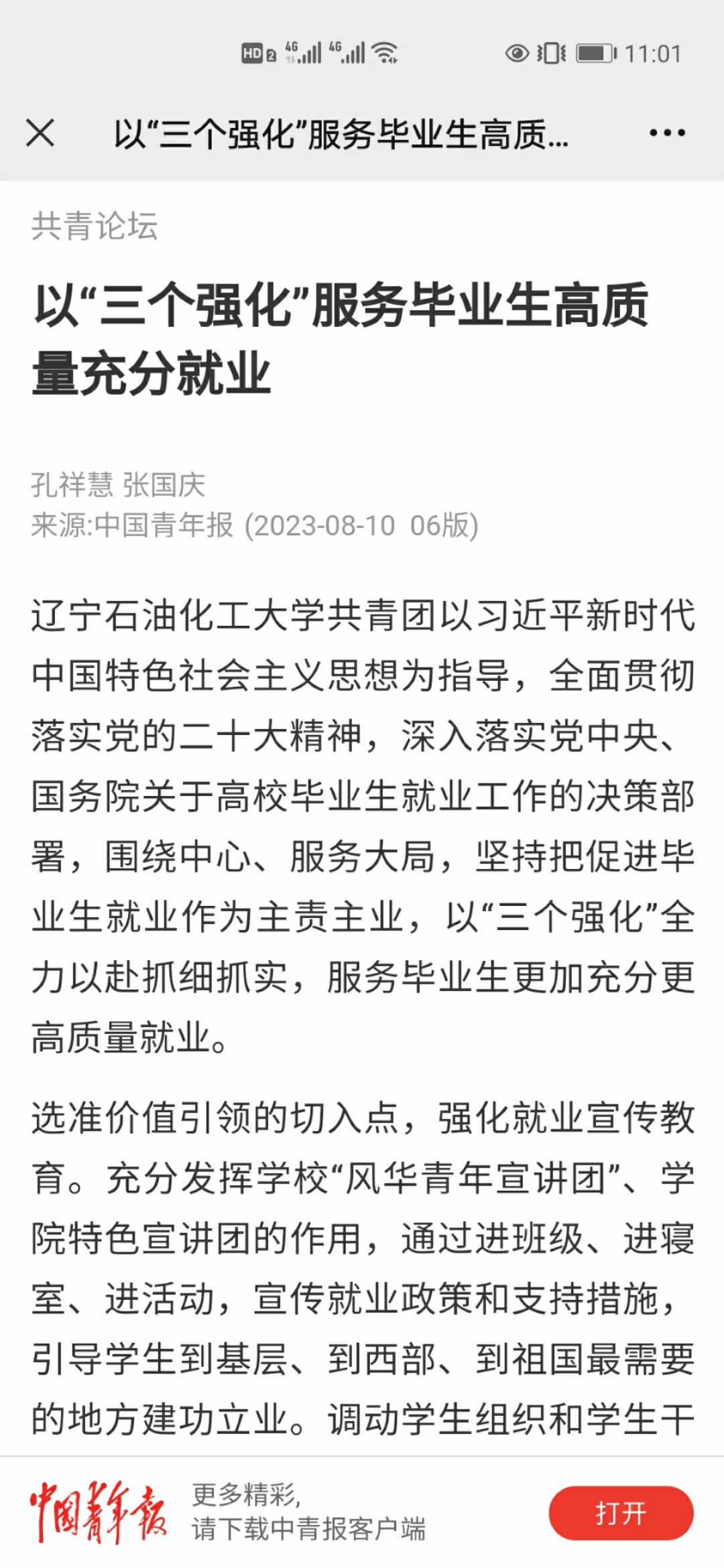 中国青年报、学习强国:以“三个强化”服务毕业生高质量充分就业