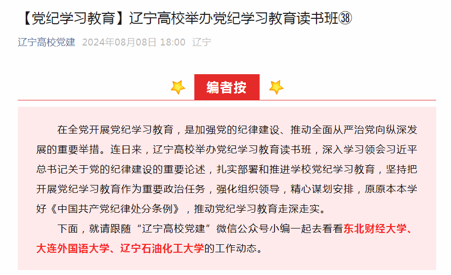 辽宁高校党建微信公众号:【党纪学习教育】辽宁高校举办党纪学习教育读书班㊳