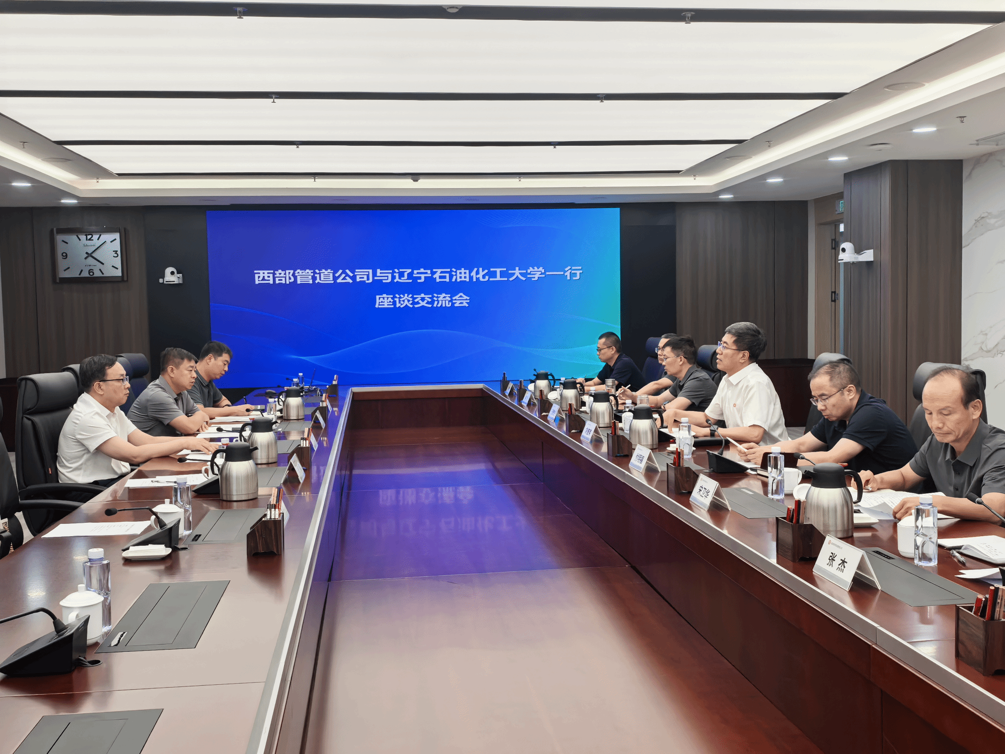 随后,刘坚一行来到国家管网集团西部管道有限责任公司。公司执行董事、党委书记刘奎荣对学校来访表示热烈欢迎,并介绍了公司科技创新工作情况,分享了公司在保障国家能源安全中面临的挑战与机遇,表达了与学校在人才引育、技术创新等方面加强合作的意愿,期望借助高校科研力量,提升管道输送领域的安全性、高效性与智慧化水平。