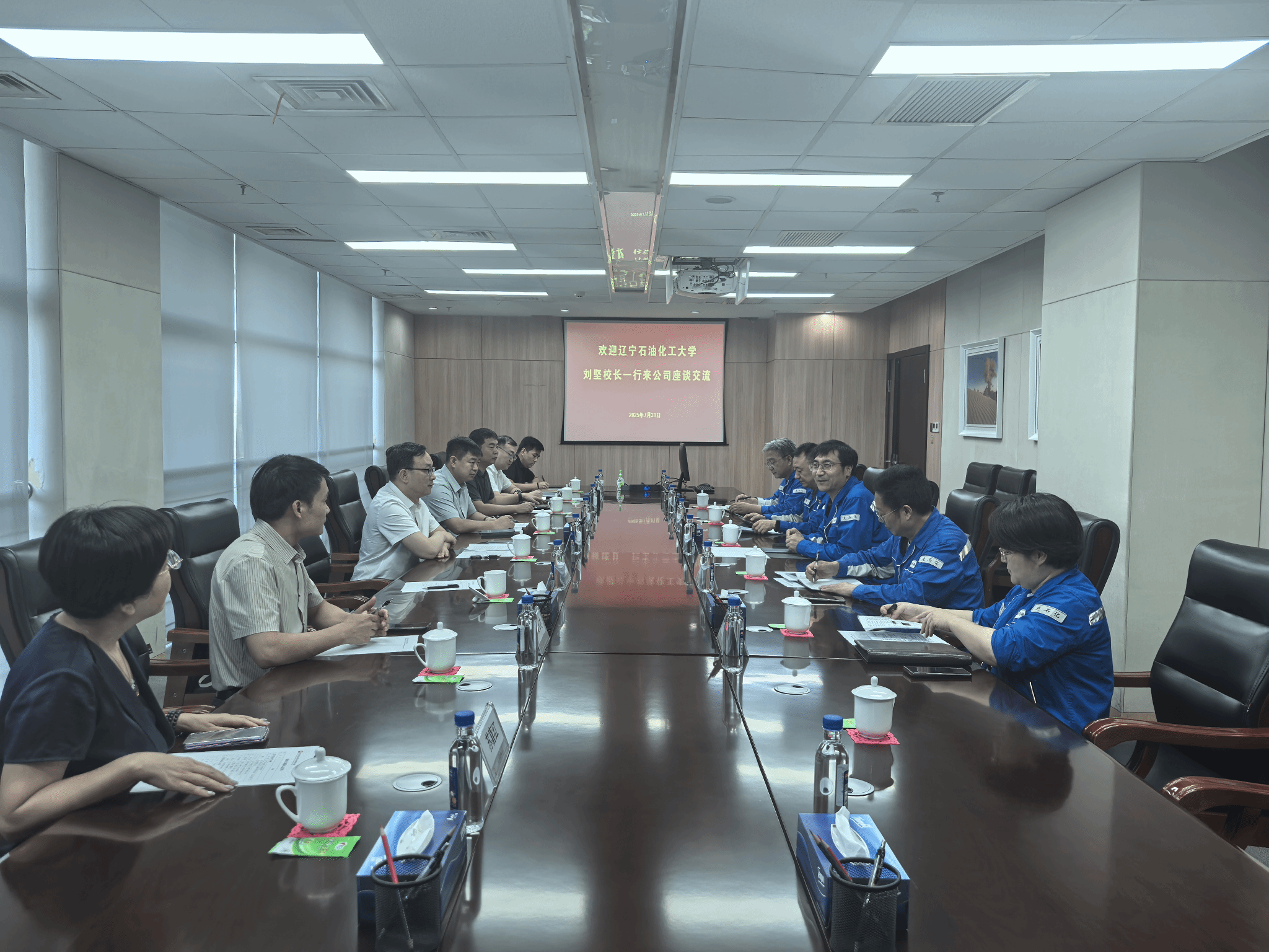 8月1日,在克拉玛依石化,公司总经理谢恒与刘坚一行进行了深入交流。克拉玛依石化公司领导介绍了公司在特色产品研发、绿色低碳转型等方面的成果与规划,强调了人才与科技创新对企业高质量发展的重要性,希望与学校建立长期稳定的合作关系,共同攻克行业技术难关,提升企业核心竞争力。